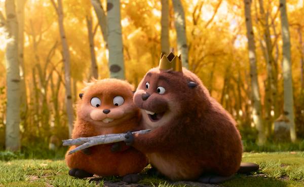 Alas, this idyllic interlude is all too brief, as we skip forward a decade later, with Grandma’s beloved glen threatened with demolition to make way for a highway overpass thanks to Mayor Jerry (John Hamm, sending up his slick Mad Men image). The title of the movie refers to the woodland creatures that Mabel looks after as well as the ultra-special-secret robotic animals her college professor Dr. Sam (Kathy Najimy) is using to observe critters in their natural habitat, but it’s Mabel who’s hopping mad. Bent on saving her glade, she “hops” her brain waves into the shell of a robotic beaver and takes off in search of natural inhabitants to save the glade from disaster. (The film is fully aware of its borrowed sci-fi concepts: “Guys, this is like Avatar!” Mabel exclaims.)